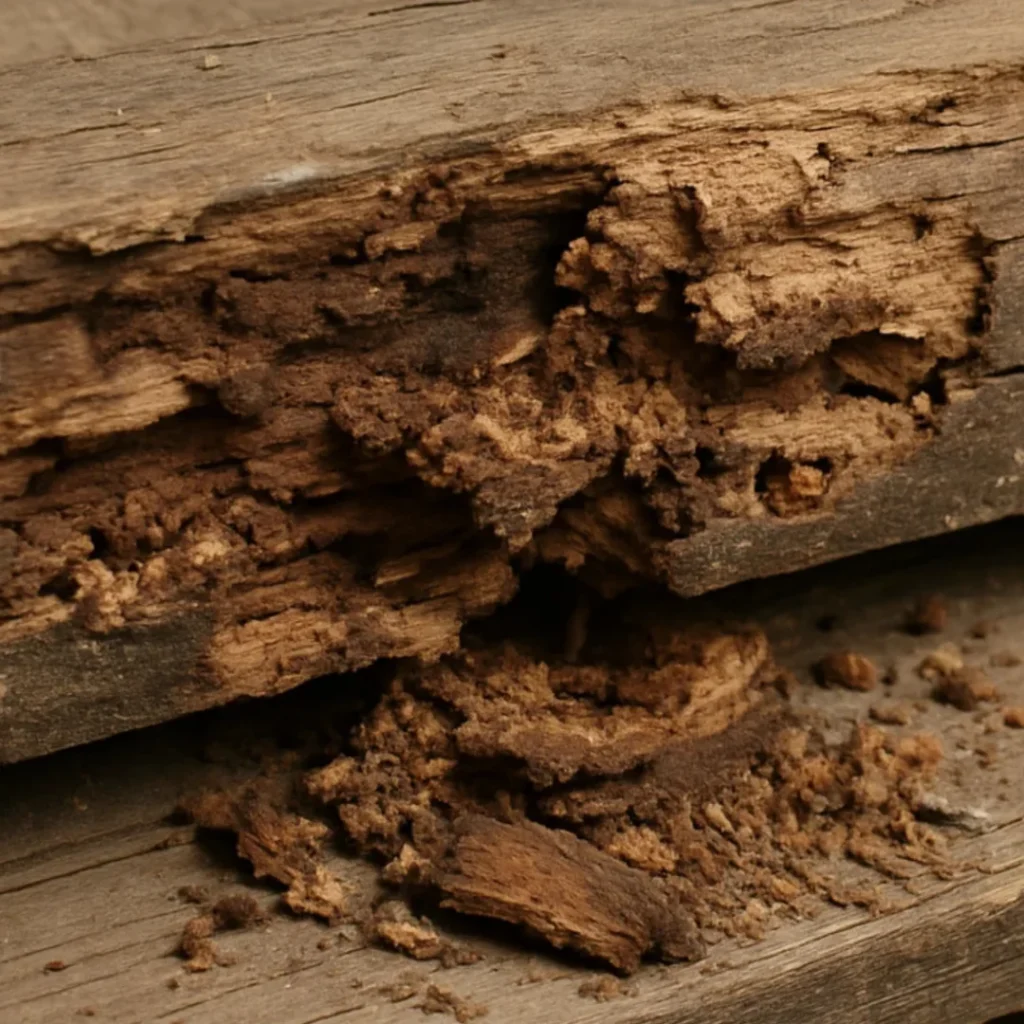 Wet rot is a type of fungal timber decay caused by sustained exposure to moisture. It softens, weakens, and breaks down wood fibres, typically in poorly ventilated or damp areas of a property.