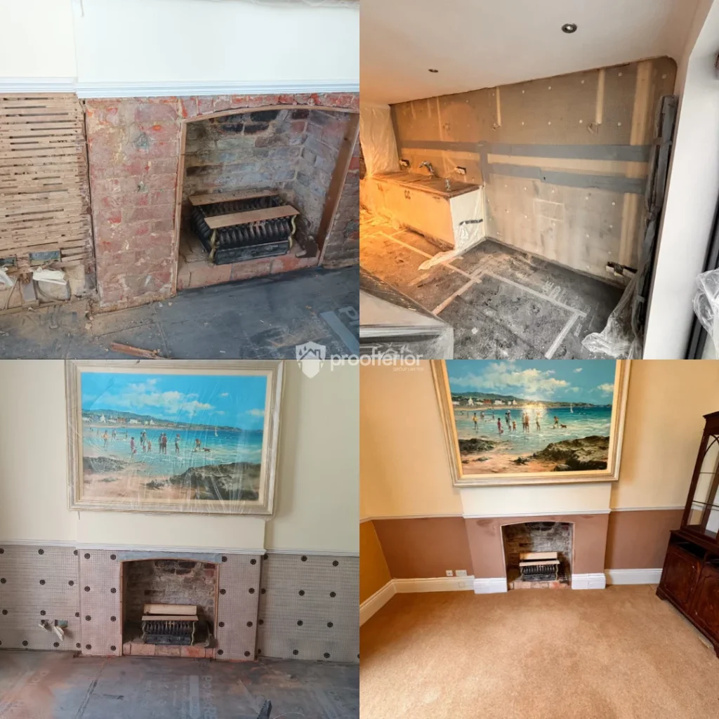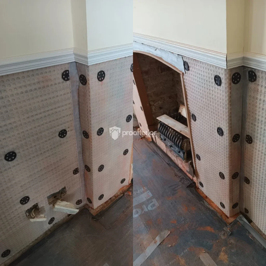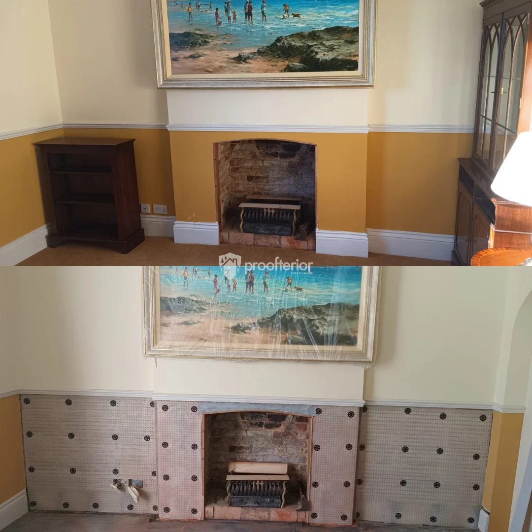 Proofterior follows a structured, PCA-aligned damp proofing process to ensures the fireplace wall is protected against future rising damp while maintaining breathability and durability.