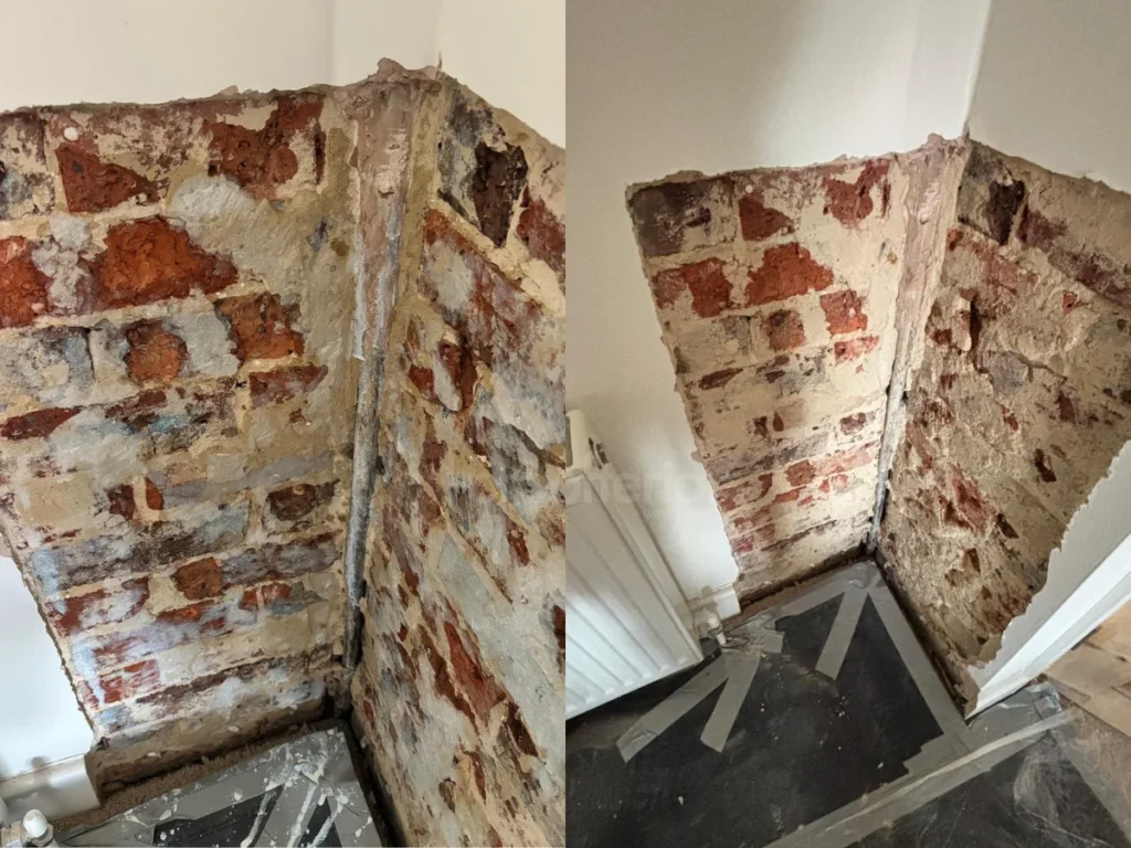 In this case, while a previous shower leak contributed to localised damp, the primary issue was rising damp, which required a full damp proofing solution rather than a simple repair