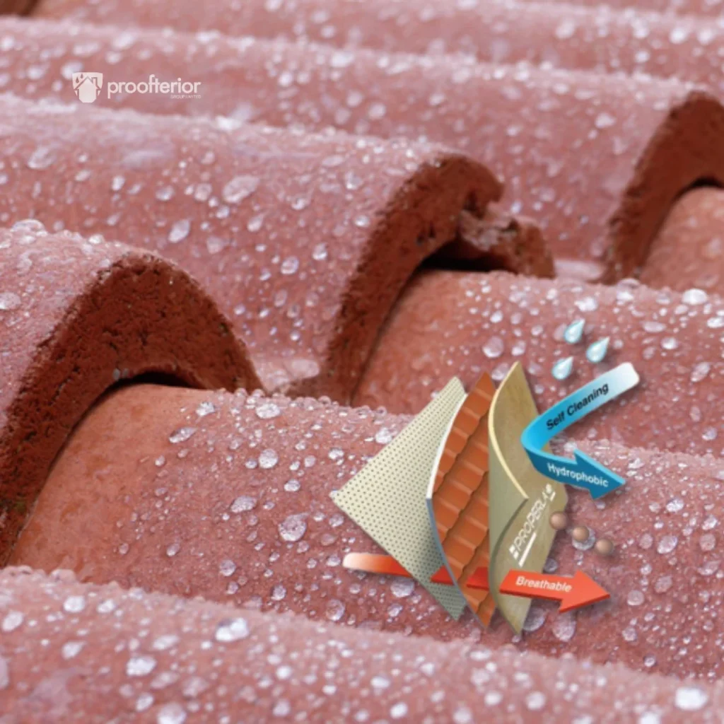 Engineered with advanced hydrophobic technology, RENOTEC® creates a water-repellent, self-cleaning surface that prevents water absorption and reduces biological growth. Rainwater runs freely off the tiles, helping the roof stay cleaner for longer, maintain colour vibrancy, and gain extended protection against environmental wear, UV exposure, and ongoing moisture damage.